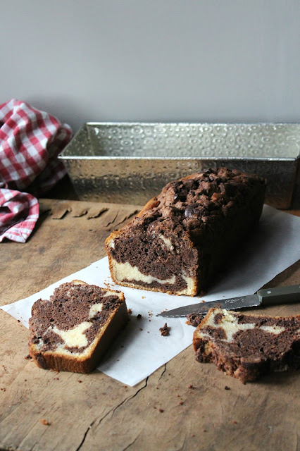Pour le montage : Après avoir mis du papier cuisson dans votre moule à cake, déposez la moitié de la préparation à la vanille recouvrez avec la moitié de la préparation au cacao. Couvrez avec le reste de la préparation à la vanille puis recouvrez avec le reste de la préparation au cacao.