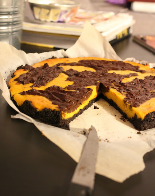 La dernière recette de la semaine est plutôt gourmande, la base se compose de oreos finement mixé puis d’une purée de potiron et une partie cacaoté. La recette provient d’ici , est typiquement américaine et serait le genre de recettes qu’on proposerait à une fête d’Halloween.