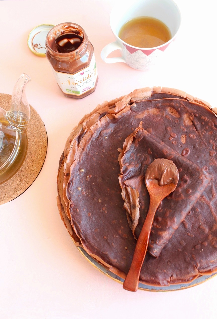 L’année passée je vous avais proposé une recette de crêpe classique avec une garniture à l’amande mais aussi des pancakes japonais. La recette classique citée dessus fonctionne toujours aussi bien , je l’ai refaite le weekend passé. Et ce dimanche j’ai essayé aussi la pâte à crêpe au chocolat. Comme ça on peut avoir la pâte au chocolat et la garniture. Les fans de chocolat comprendront. Les autres peut-être un peu moins.