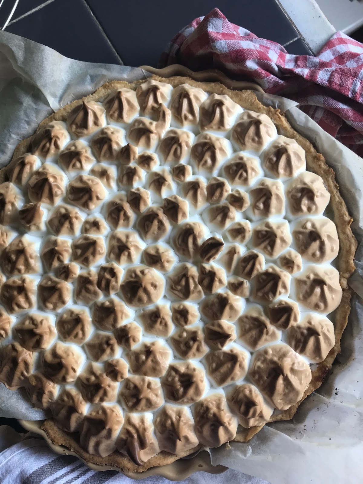 Enfournez de nouveau la tarte à 220 °C pendant 10 min, puis je l’ai passé quelques minutes au grill du four pour dorer la meringue