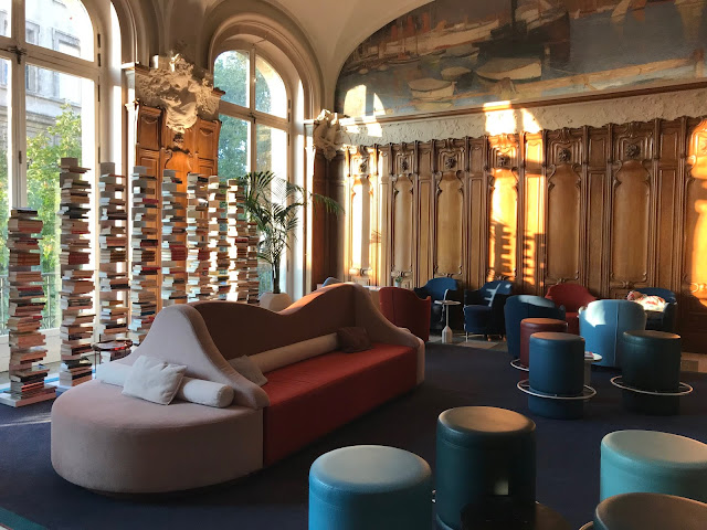 Pour cette seconde saison, nous avons posé nos valises au Château Perrache. Je suis sure qu’un grand nombre de lyonnais ont du passer devant sans jamais s’y arrêter. Grossière erreur les amis, cet hôtel est de toute beauté. Si on remonte un peu en arrière il a été construit en 1904, c’est le premier hôtel 4 étoiles de la ville. Érigé à côté de la gare, Lyon ville à mi chemin en Marseille et Paris est une escale parfait pour une courte halte. Aujourd’hui l’hôtel est classé aux monuments de France. Le hall d’accueil ainsi que la salle du déjeuner conservent des signes magnifiques de l’époque.