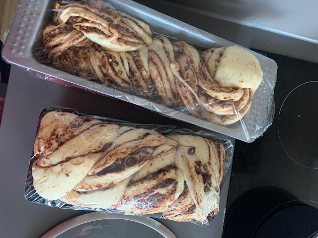 Préchauffez le four à 180°C, quand les babkas ont monté, enlevé le film plastique et enfournez pendant 30 min jusqu’à ce que le dessus des gâteaux soit bien doré