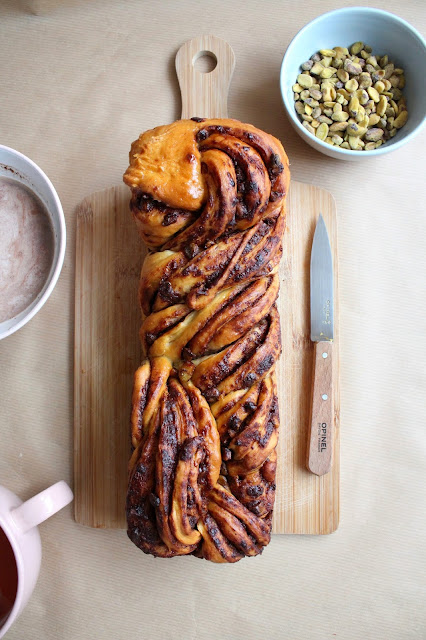 Il n’y avait pas de babka chocolat pistache sur le blog, c’est chose faite maintenant. Je suis folle de brioches et autres viennoiseries alors je ne résiste jamais à tester une nouvelle recette. Et celle ci était dans ma liste depuis un petit moment. Rien de compliqué, il faut par contre avoir un peu de temps devant vous, car la brioche repose une fois une nuit. On s’y prend donc un peu en avance pour préparer cette babka. Je vous rassure le résultat en vaut par contre la peine. La recette provient du blog The Boy Who Bakes