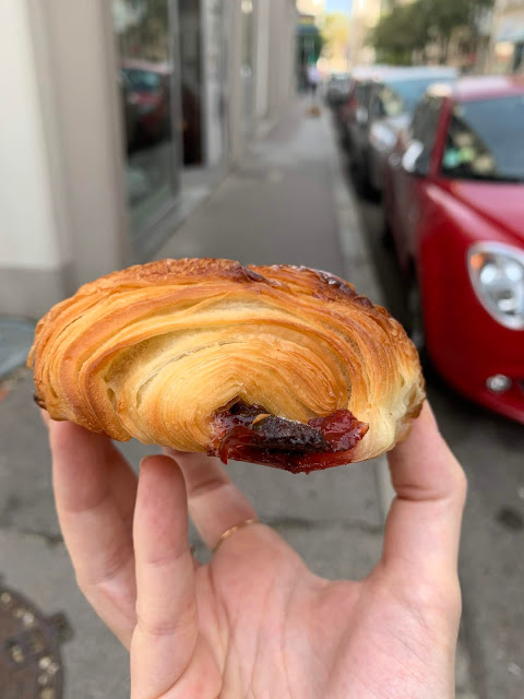 Chez Thomas a ouvert récemment à côté de la Part Dieu , je suis tombée un peu par hasard via Instagram. Je ne savais pas trop quoi prendre alors j’ai opté pour le pain au chocolat framboises. Bonne pioche en somme. La baguette est très bonne aussi.
