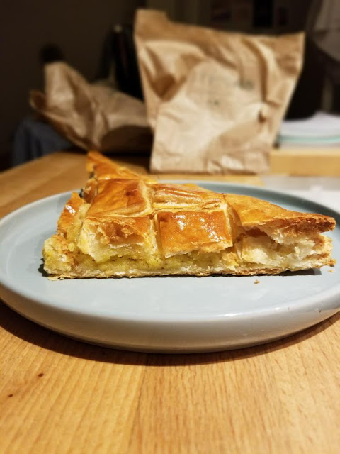 Avec de la crème d’amandes avec une petite touche de rhum ou en version briochée , celle ci est préparée avec de la farine bio. La garniture est généreuse mais on a trouvé la pâte feuilletée un poil sèche et dure à couper