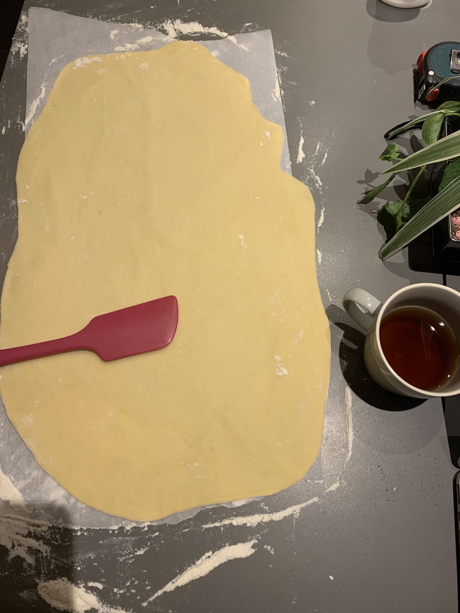 Lorsque la pâte a doublé de volume, étalez-la en un rectangle de 40x40cm