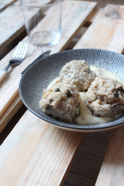 Quand nous étions petites ma mère cuisinait souvent des boulettes grecques, des Keftedes en quelque sorte. Avec du bœuf haché et du thym grec provenant du jardin de notre grand-mère. D’ailleurs cette recette elle la tient d’elle. Malheureusement comme je ne l’avais pas sous la main je vous propose donc une variante plus française avec de la viande hachée de veau. Des boulettes de veau avec une petite sauce au vin blanc. L’avantage du veau c’est que c’est une viande très moelleuse et tendre puis ajouté à cela le petit gout de Rielsing qui parfume la viande et les câpres avec. Un beau mariage en quelque sorte. J’espère que cela vous plaira. Et dernière précision la recette provient du dernier magazine Saveur que je vous recommande fortement.