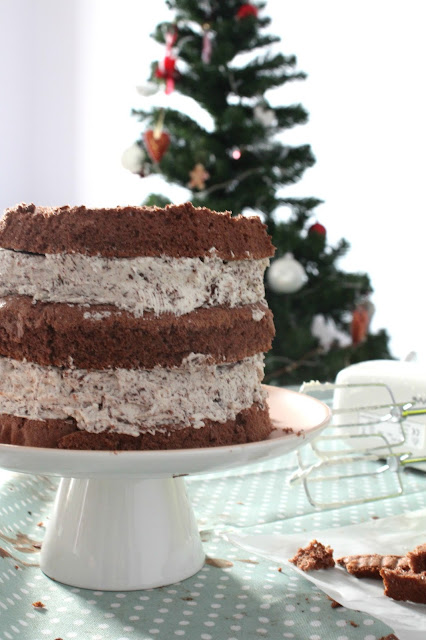 Et dire qu’il s’agit du dernier jour de l’année. Celle-ci est passée si vite. Comme nous sommes le 31, je vous ai préparé une belle recette. « A big cake for a big party » voila pourquoi aujourd’hui ça sera un généreux gâteau au chocolat avec une crème façon stracciatella. Parce que je sais que votre soirée sera longue et qu’il vous faudra des forces pour tenir jusqu’au bout de la nuit. Trêve de bêtise. Ce gâteau je l’adore, c’est pour dire nous l’avons cuisiné trois fois pour trois moments différents avec des personnes différentes et à chaque fois il a eu son petit succès. Le mieux est de le préparer la veille pour le lendemain. Comme ça il devient super moelleux et se coupe très bien. La recette est tiré du dernier magazine Saveurs. Je file, on a des desserts à préparer ce soir. Notre soirée sera plutôt tranquille entre amis sans folie, cependant nous lèveront tous nos verres de cocktail ou flutes de champagnes pour dire au revoir à cette année 2015. Année qui fut pleine de surprises, de bon moments, d’un peu moins bons et de belles rencontres.