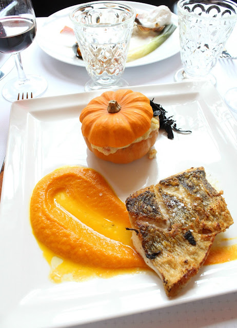 Vous avez compris mon repas a été très orangé. Le filet de sandre cuit sur peau était tendre et bien assaisonné. Quelle bonne idée cette croute de sel. Et que dire du risotto à la courge muscat se cachant dans ce petit légume orange. Moelleux et crémeux.