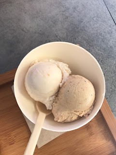 4-Avouons que ce week-end le soleil a été au rendez-vous alors j’ai envie de vous parler des glaces de la Fabrique Givrée. Au coeur du Vieux Lyon mon coeur balance souvent entre deux ardéchois. Cependant je crois que j’apprécie beaucoup La Fabrique. Parce que vous pouvez déguster tranquillement vos glaces sur la terrasse à l’arrière de la boutique. Une terrasse peut s’avérer très pratique, surtout lorsque celle-ci est ombragée. Le choix des parfums est certes restreint mais sont réalisés avec des produits de saison. Selon les saisons, les parfums proposés changent. Les créations sont originales et gourmandes. « La piste noire » que nous avions choisi, n’a pas fait long feu à vrai dire. Composée de glace jivara au chocolat noir , chantilly, sauce caramel, biscuit moelleux choco sans farine et éclat de tuile fèves cacao, ce fut un régal !