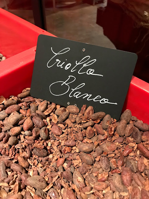 Ces diamants bruts proviennent majoritairement d’Amérique Centrale : Mexique, Belize, Vénézuela et aussi Madagascar. On assiste même au visionnage d’un petit film ou Mr et Mme Sève vont chercher les fèves dans les cabosses au Mexique directement chez le producteur. Plongé en pleine forêt on assiste notamment à la cueillette des fèves qui sont ensuite séchées. Il faut 20 cabosses pour obtenir un 1kg de fèves séchées.