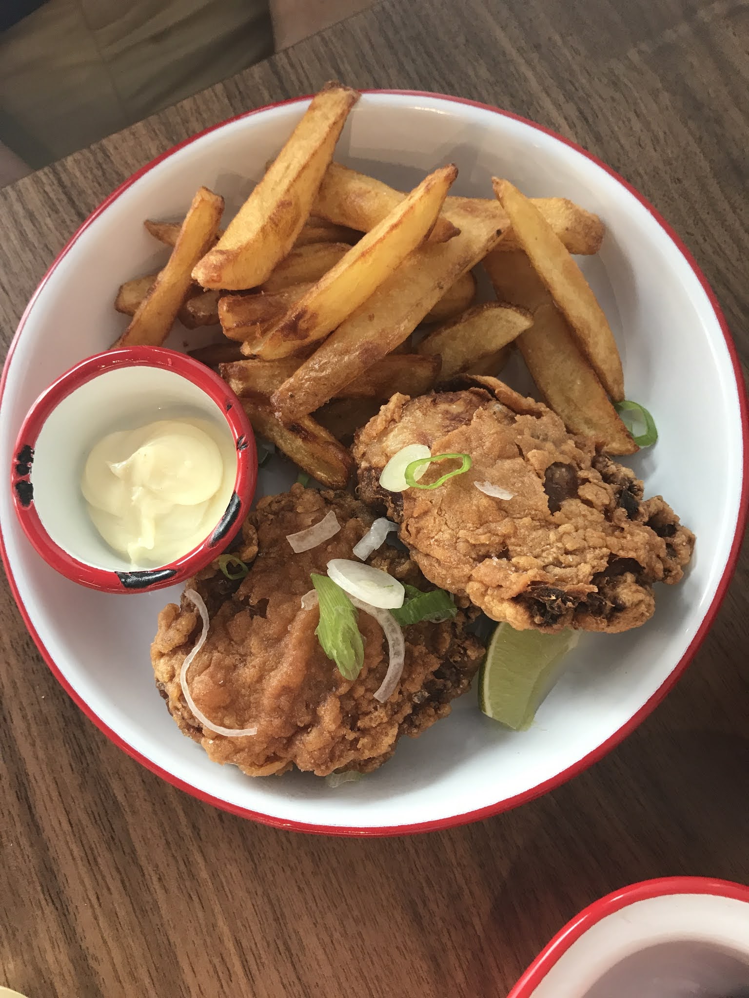 Le poulet frit fait parti des plats que je ne cuisine pas à la maison. Déjà parce que je n’ai pas de friteuse mais aussi parce que je n’aime pas que l’odeur de friture s’y propage un peu de partout (ce sont les inconvénients des cuisines ouvertes). De part ces 2 arguments je n’en cuisine jamais. Par contre lorsqu’on m’en propose d’aller en manger à l’extérieur je ne dis pas non.