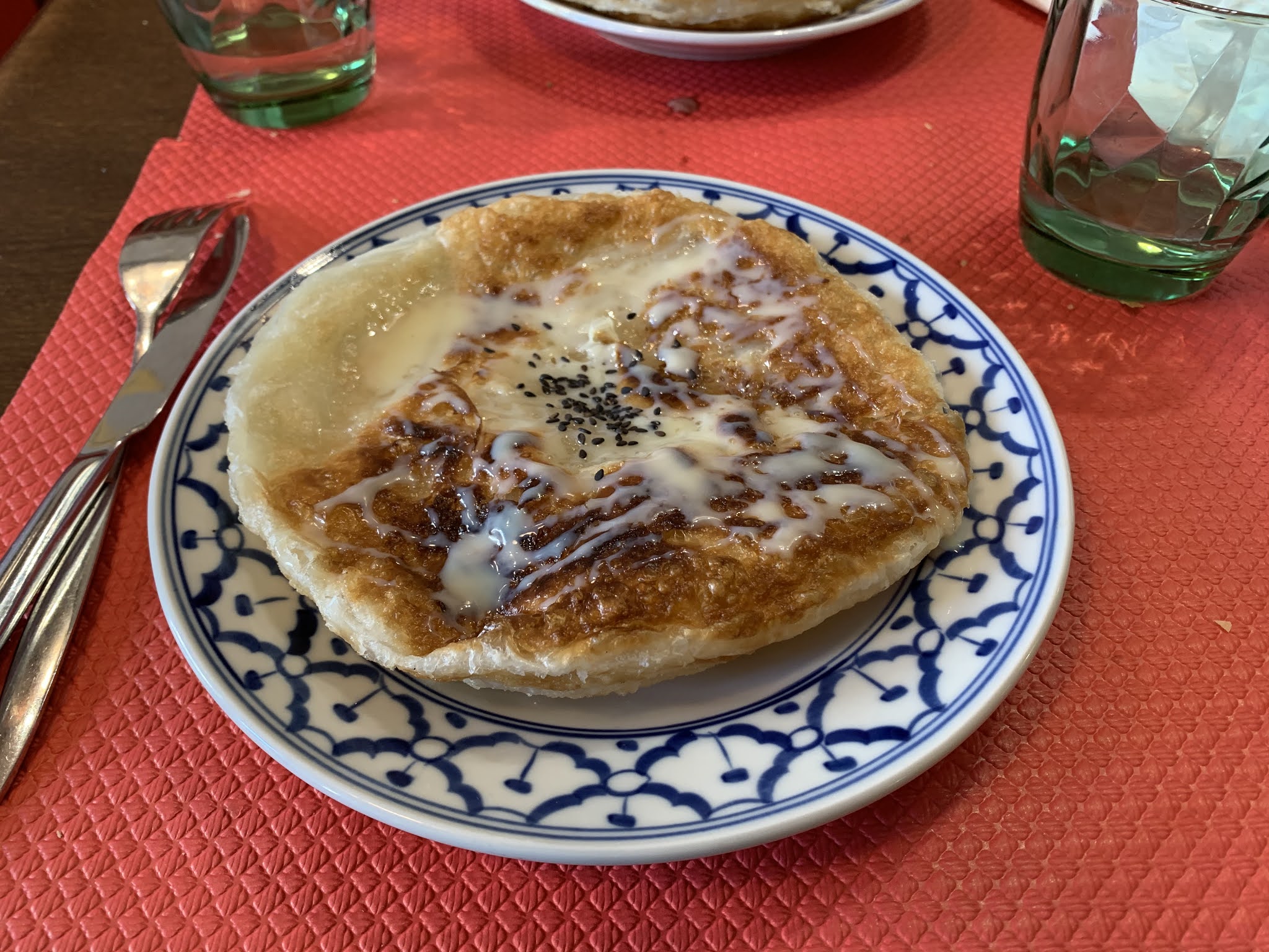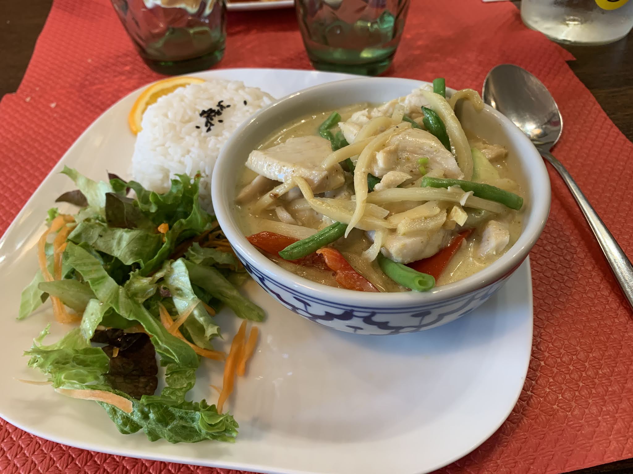 Les samoussas étaient chauds, bien garnis, trois pièces suffisent amplement. Il y a des options plus légères en entrée comme la soupe de poulet au lait de coco si vous souhaitez commencer sur une touche moins grasse. Ensuite le curry vert était bien relevé et les morceaux de poulet bien moelleux, la portion est généreuse. Le boeuf sauce aigre douce portait bien son nom. La crêpe thaï , n’est pas comme une crêpe bretonne , elle était feuilletée et sucrée avec le lait concentrée sucré. On a passé un bon moment et on a bien mangé. Piment et Citronnelle est une bonne adresse pour venir déjeuner thaïlandais dans le quartier.
