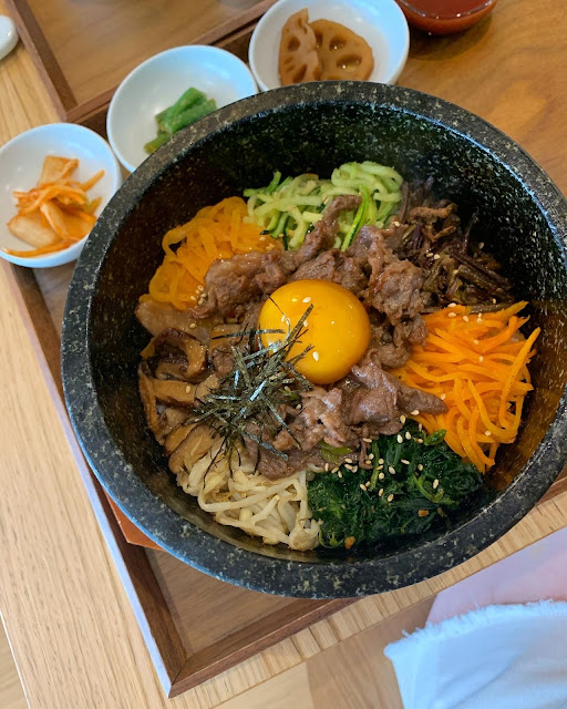 Le poulet frit est bien cuisiné, il ne dégouline pas de gras. Il est relevé comme il faut et honnêtement je regrette de devoir le partager. Pour en avoir mangé plusieurs ces derniers temps mais en mode asiatique, je dirais que celui-ci est un de mes préférés. Le bibimbap arrive bien brulant et il faut être un peu patient avant de le savourer. Les morceaux de viande sont généreux, les légumes croquants. Evidemment côté prix on est loin du boui boui mais la qualité et le travail les justifient grandement.