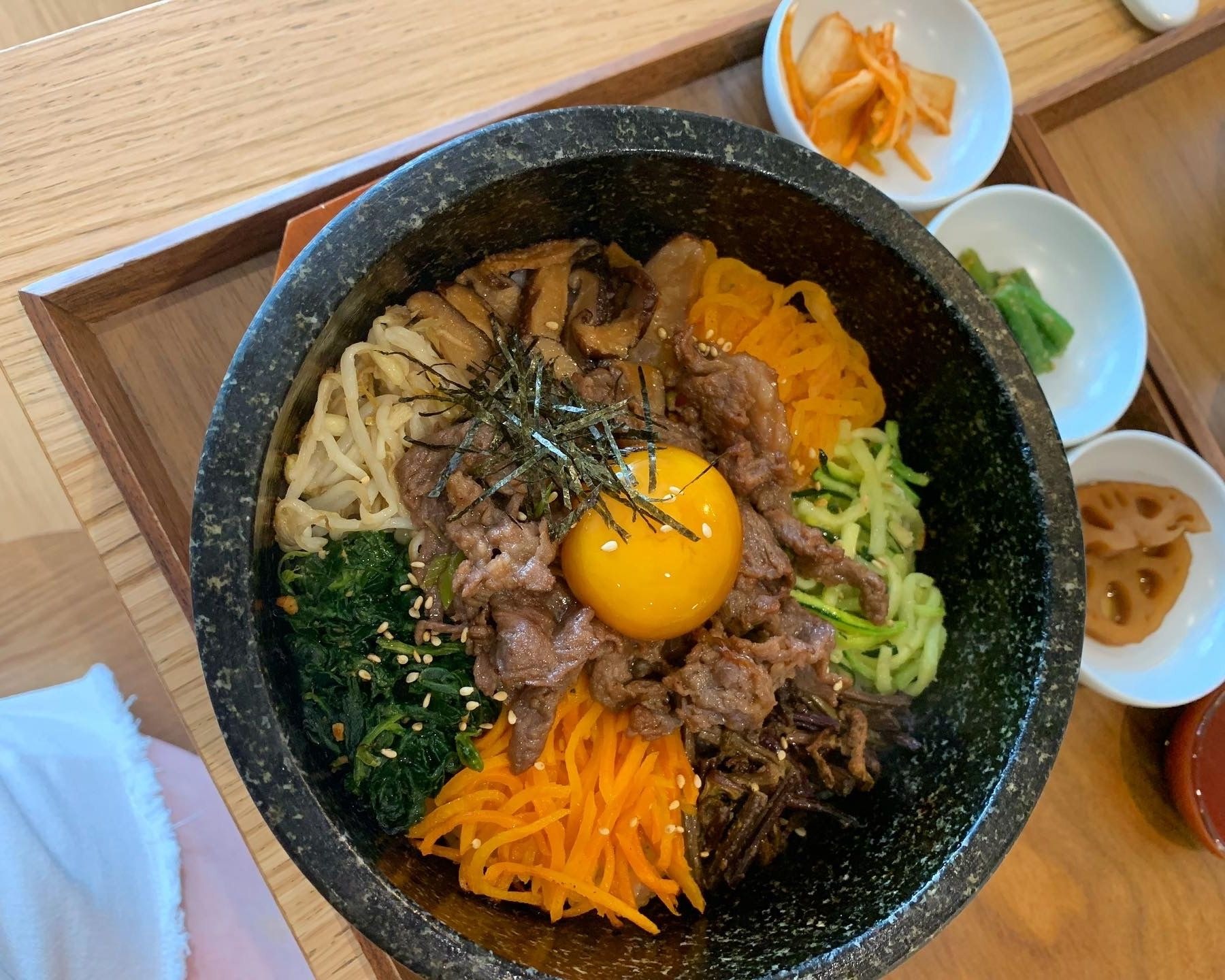 La devanture de Sinabro est discrète et sobre, pourtant il faut oser franchir la porte. Aux manettes on y trouve le chef du Passe Temps qui y propose des plats traditionnels coréens : le bibimbap