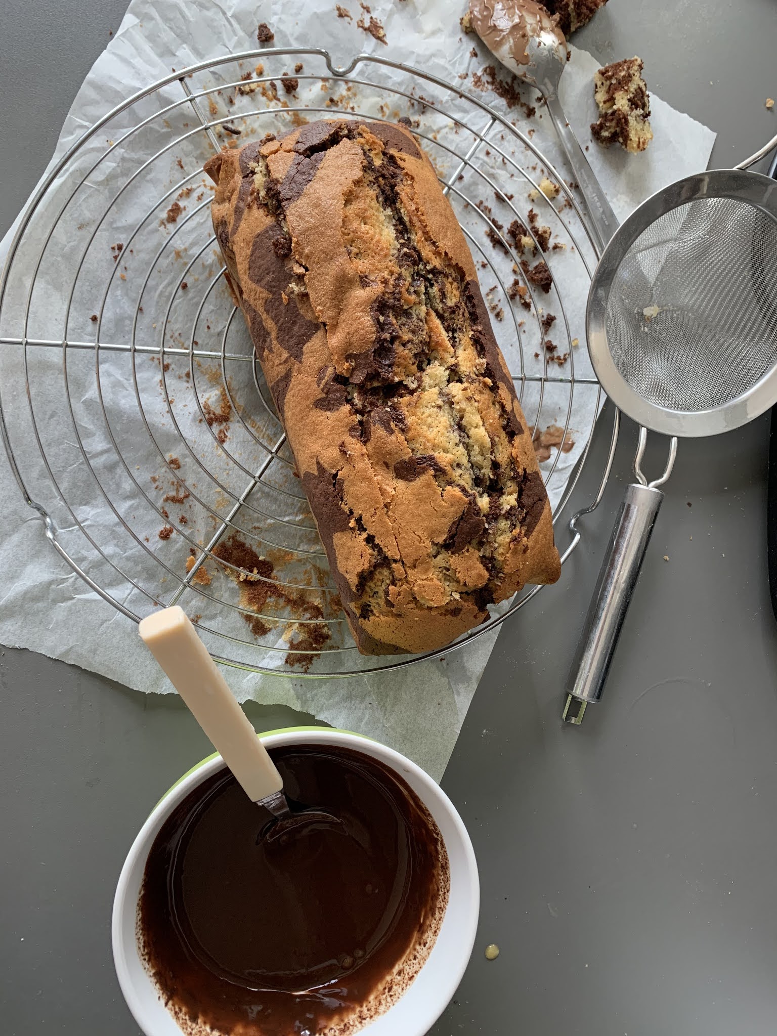 Dernière recette de marbré testée et approuvée ici. Je crois que la pâte à tartiner fait son petit effet dans le cake. Préparée le mercredi midi , il a eu une durée de vie de 24h. Pour la pâte à tartiner j’ai simplement utiliser la Nocciolata mais vous pouvez utiliser la pâte à tartiner de votre choix. Bonne dégustation !